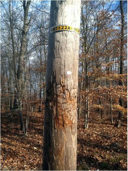 Fast forward to the fall 2011 bow season.  While scouting and bow hunting a new area, I found bear sign that was from a huge bear.  I found several trerritory markings on trees that were higher than I could reach.  The spread of the claw marks gouged into the bark of the big white oaks was intimidating.  I also found a chew tree that was just too high for an average bear.  Just as bucks “rub” trees, bears “chew” trees, or even telephone poles, to mark territory and leave scent.